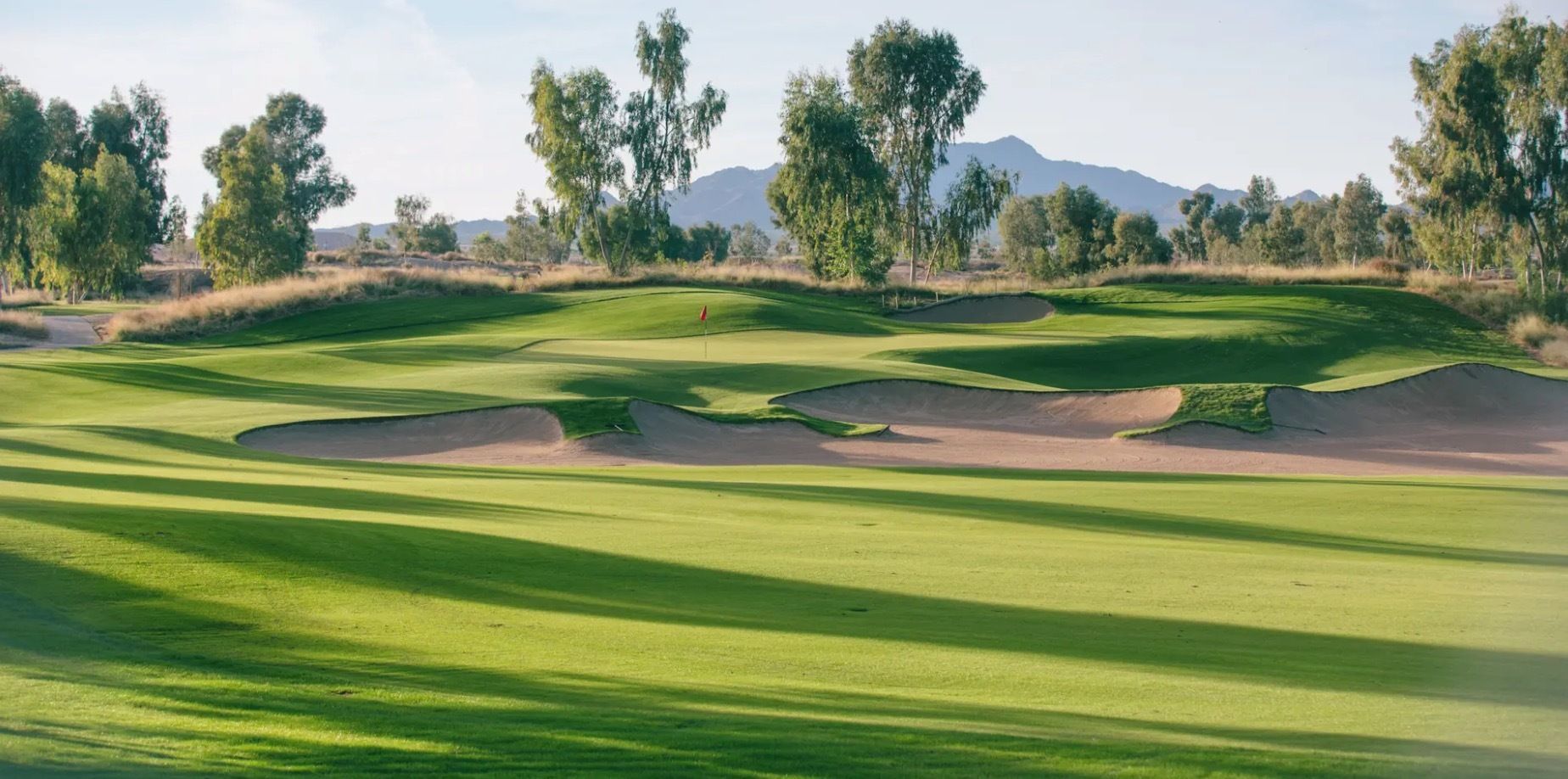 Then you walk to the first tee, and it hits you: space. Pure, uninterrupted space. The entire course sprawls across 320 acres of rolling desert, and there’s not a single house in sight — just dunes, fairways, and the distant outline of the Sierra Estrella Mountains.